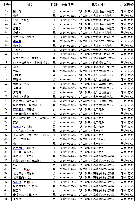 经过网上报名、资格审核、现场确认、缴费等环节,以下考生符合BB贝博2019年高职扩招第二阶段考试资格。请以下考生于2019年11月20日-11月22日到BB贝博艾弗森官方网站(地址:石河子市北十二路)招生办领取准考证,11月23日参加考试。
