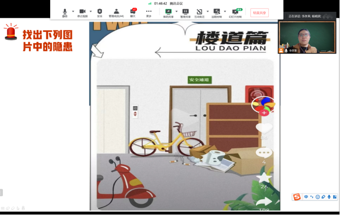要求各班级注册“全民消防学习平台”进行消防知识的学习,各班通过学习安全消防知识后,通过线上+线下的方式开展了“消防隐患我来查活动”。