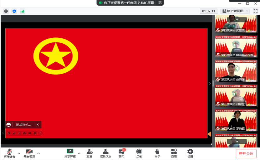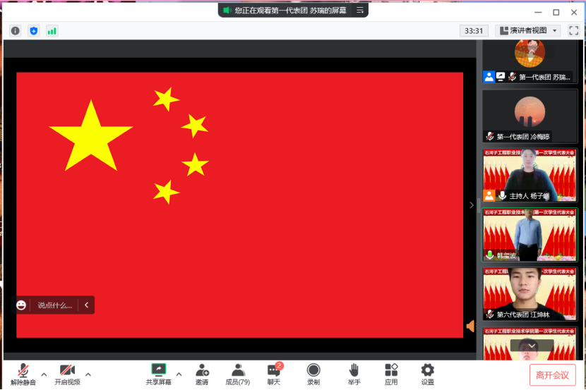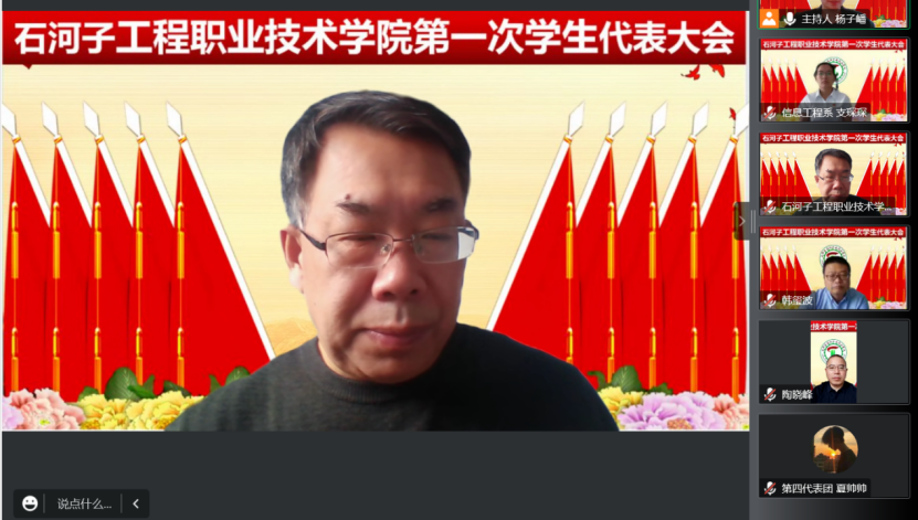 在全院上下深入学习宣传贯彻党的二十大精神之际,12月4日下午16时,伴随着雄壮的国歌声,BB贝博艾弗森官方网站第一次学生代表大会在云端隆重召开。来自6个系的56名学生,代表全院5000余名学生出席大会。学院党委书记苑国旭同志出席并讲话。学院领导班子、各系主任、学生科、团委、各系主管学生工作领导应邀出席大会。